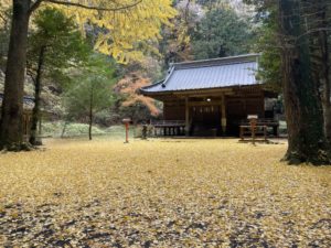 銀杏の葉の黄色い絨毯 二岡神社 御殿場市 2025年11月