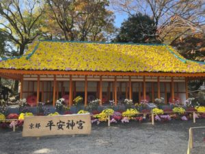 11月の末、楽寿園の菊まつりを観てきました。 今年は平安神宮の飾り展示。 とても素敵でした。 そして園内の紅葉も少し始まっていて、そちらも素敵でした。